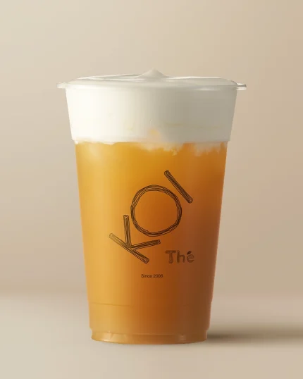 A tropical drink prepared with mango green tea & a creamy cheese foam topping