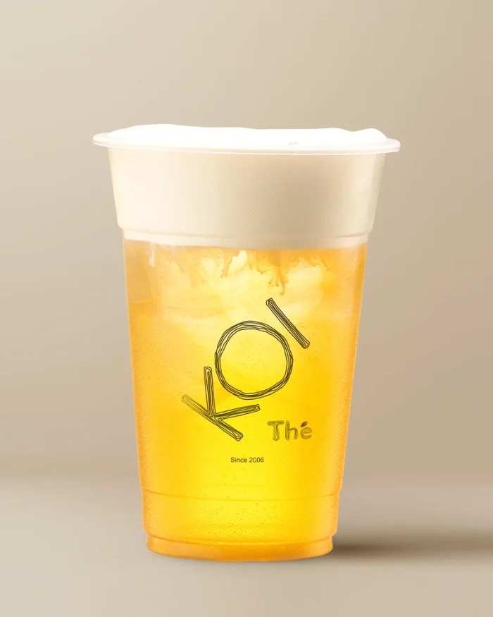 A tropical drink prepared with mango green tea & a creamy cheese foam topping